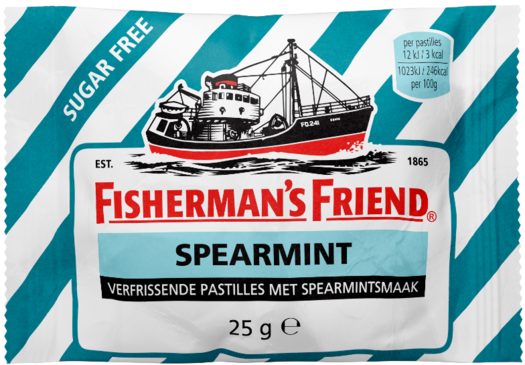 Ben je gek op munt en kan je er maar niet genoeg van krijgen? Ontdek dan onze Fisherman’s Friend Spearmint voor een nog frissere adem. Een intense en verfijnd pittige smaak van kruizemunt, verfrissend als een regenbui.